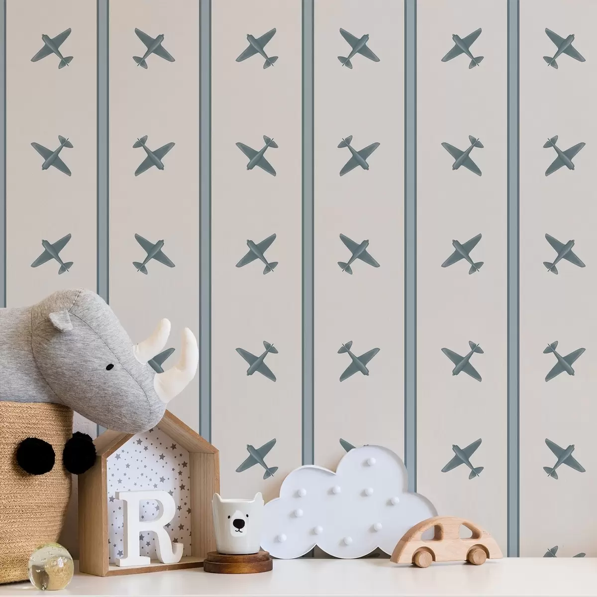 Papel tapiz Aviones con un diseño a rayas azules Nr. a01170