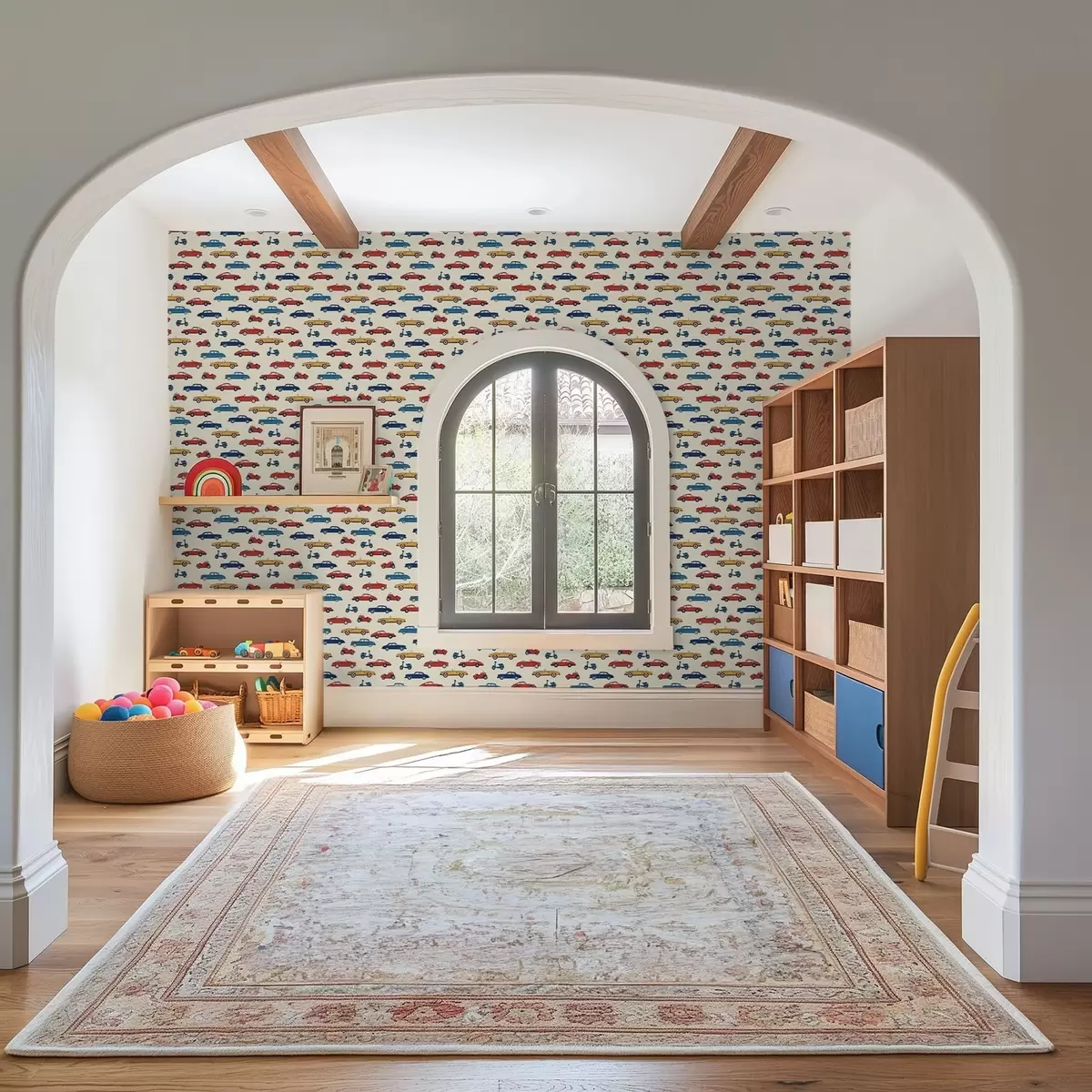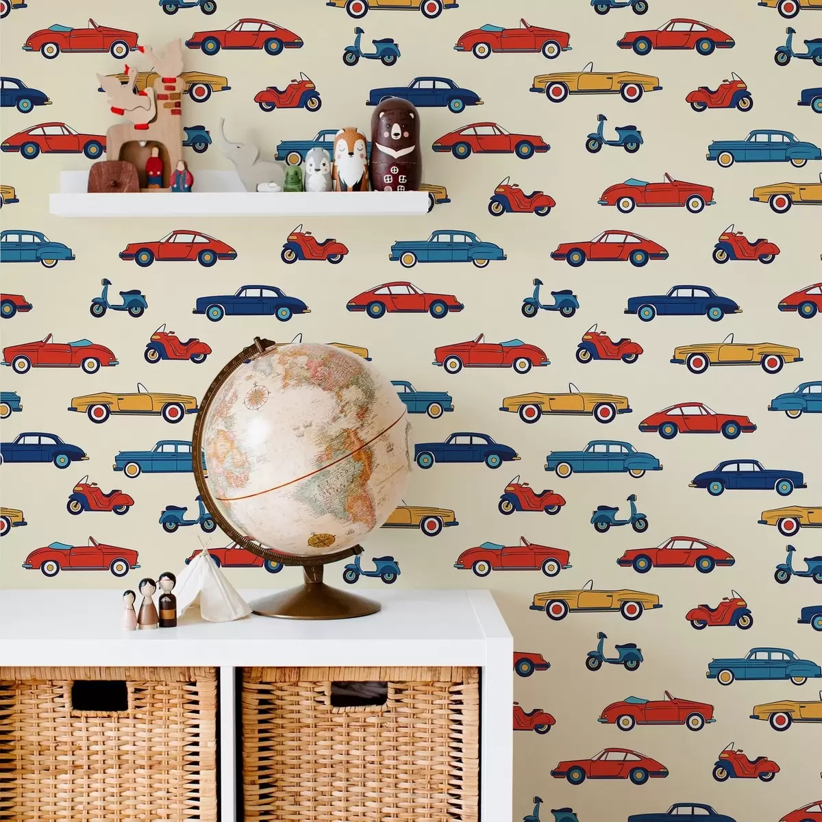 Papel tapiz Coches y motos retro de colores vivos sobre un fondo claro Nr. a01172v1