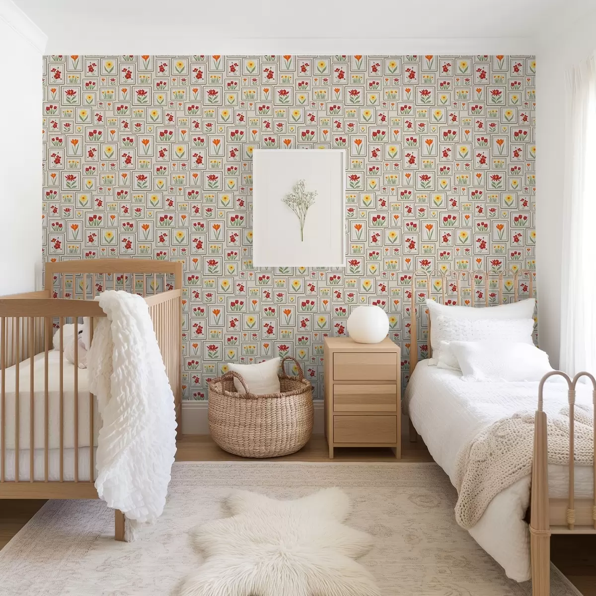 Papel tapiz Ilustraciones florales enmarcadas en tonos cálidos Nr. a01173