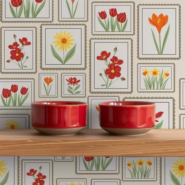 Papel tapiz Ilustraciones florales enmarcadas en tonos cálidos Nr. a01173