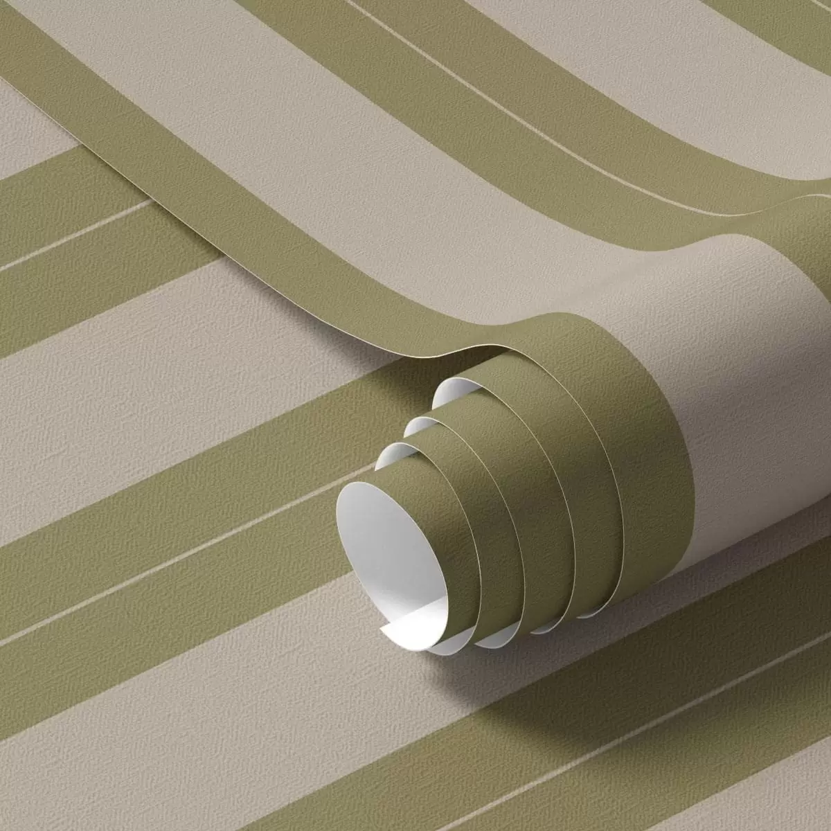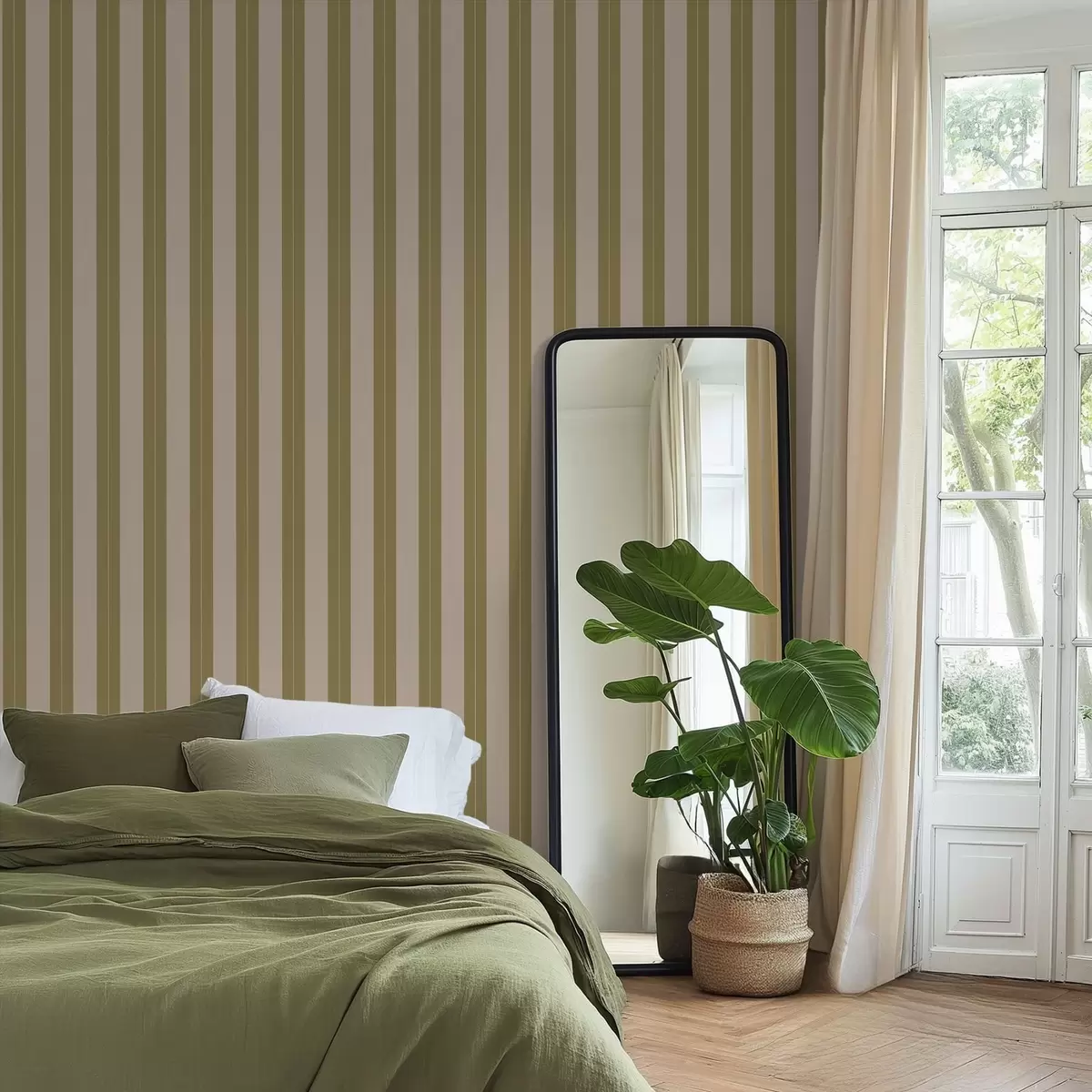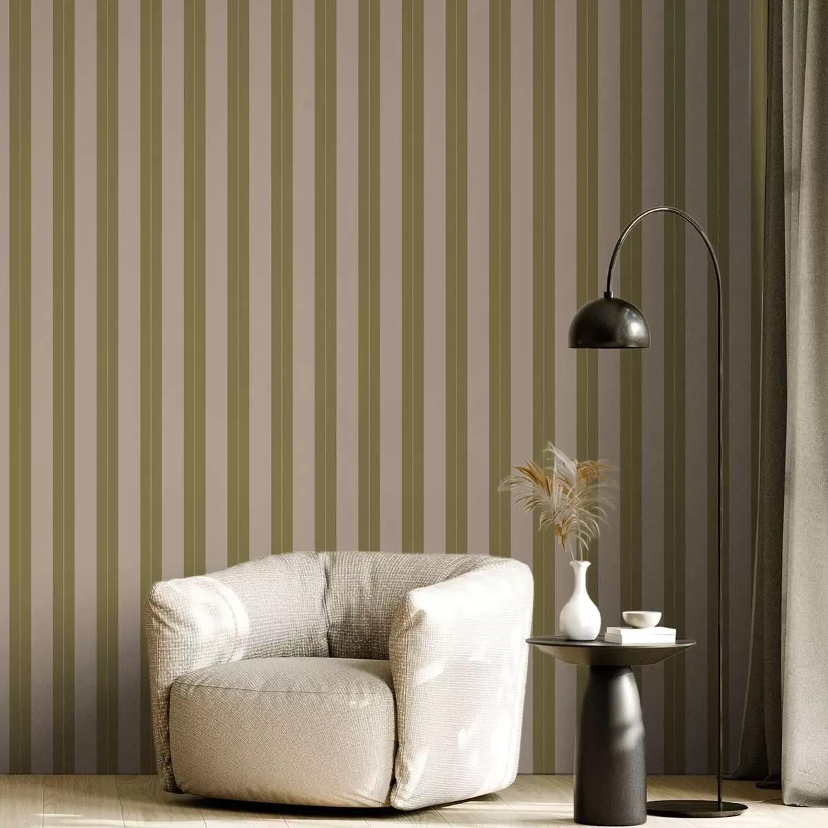 Papel pintado Rayas verticales en color verde oliva y beige a01181v2