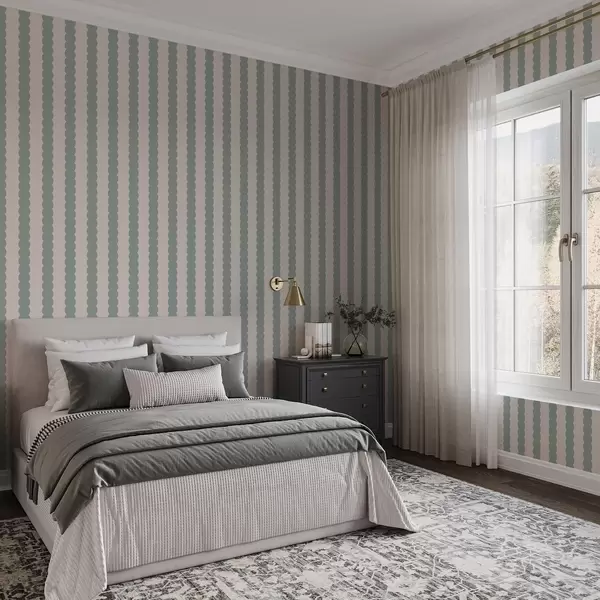 Papel tapiz Rayas onduladas en color oliva, estilo minimalista Nr. a01182v1