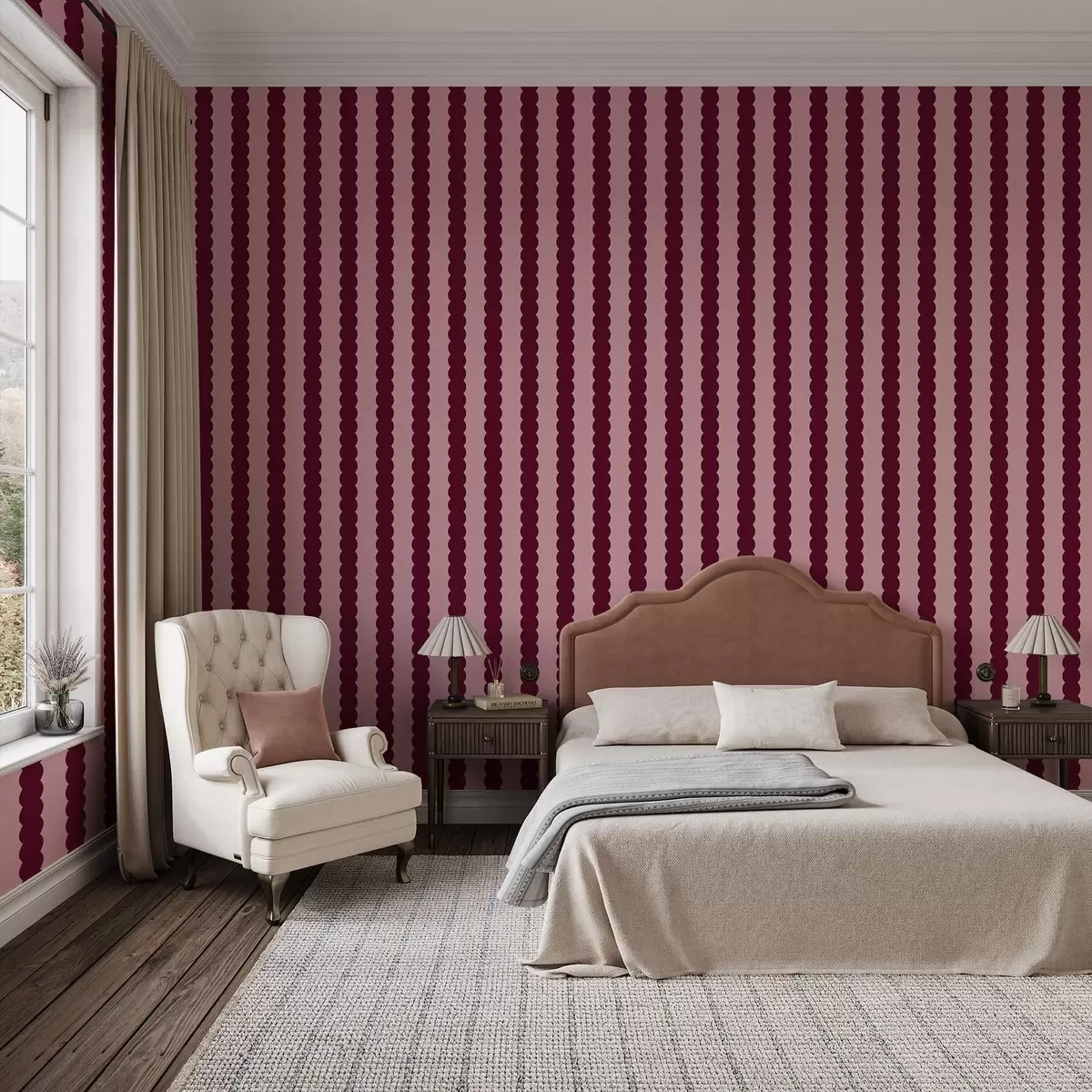 Papel tapiz Rayas onduladas en color burdeos, de estilo minimalista Nr. a01182v5