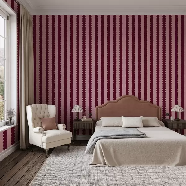 Papel pintado Rayas onduladas en color burdeos, de estilo minimalista a01182v5