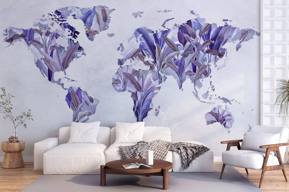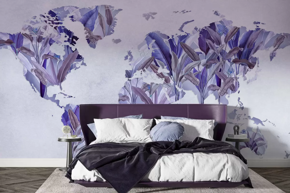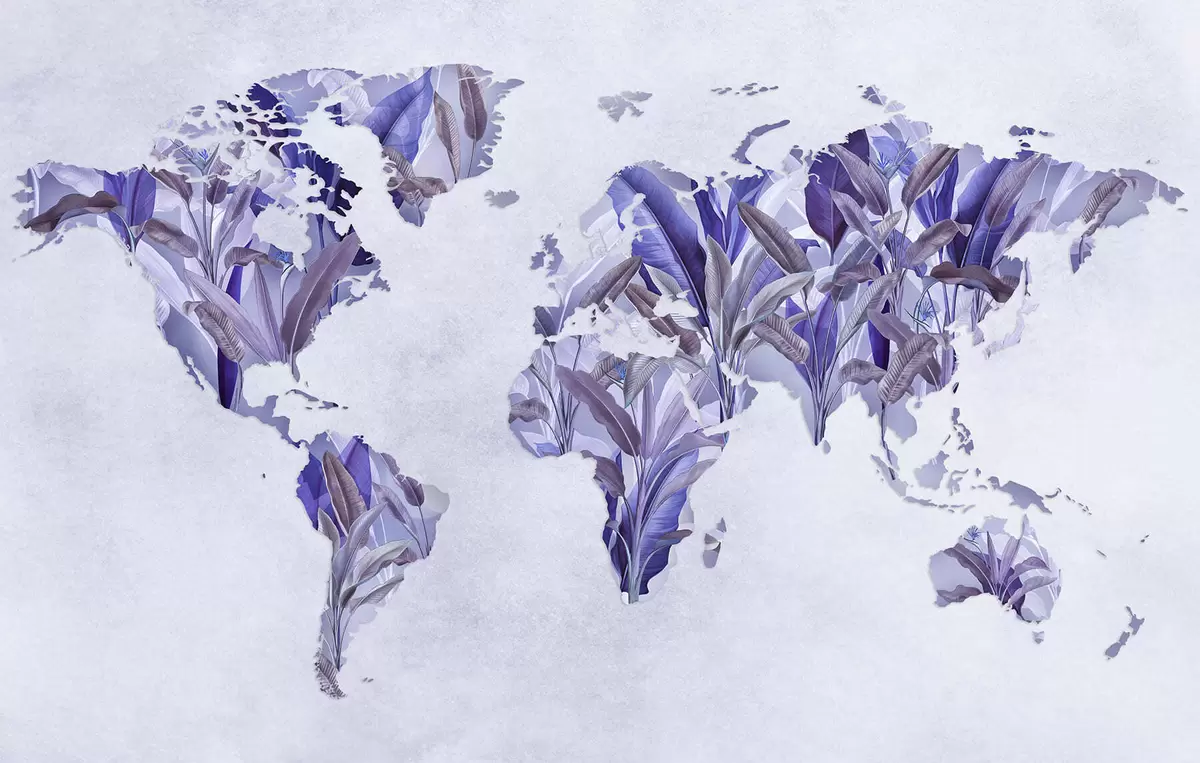 Papel tapiz Un mapamundi morado hecho con hojas de plátano Nr. c00007v1