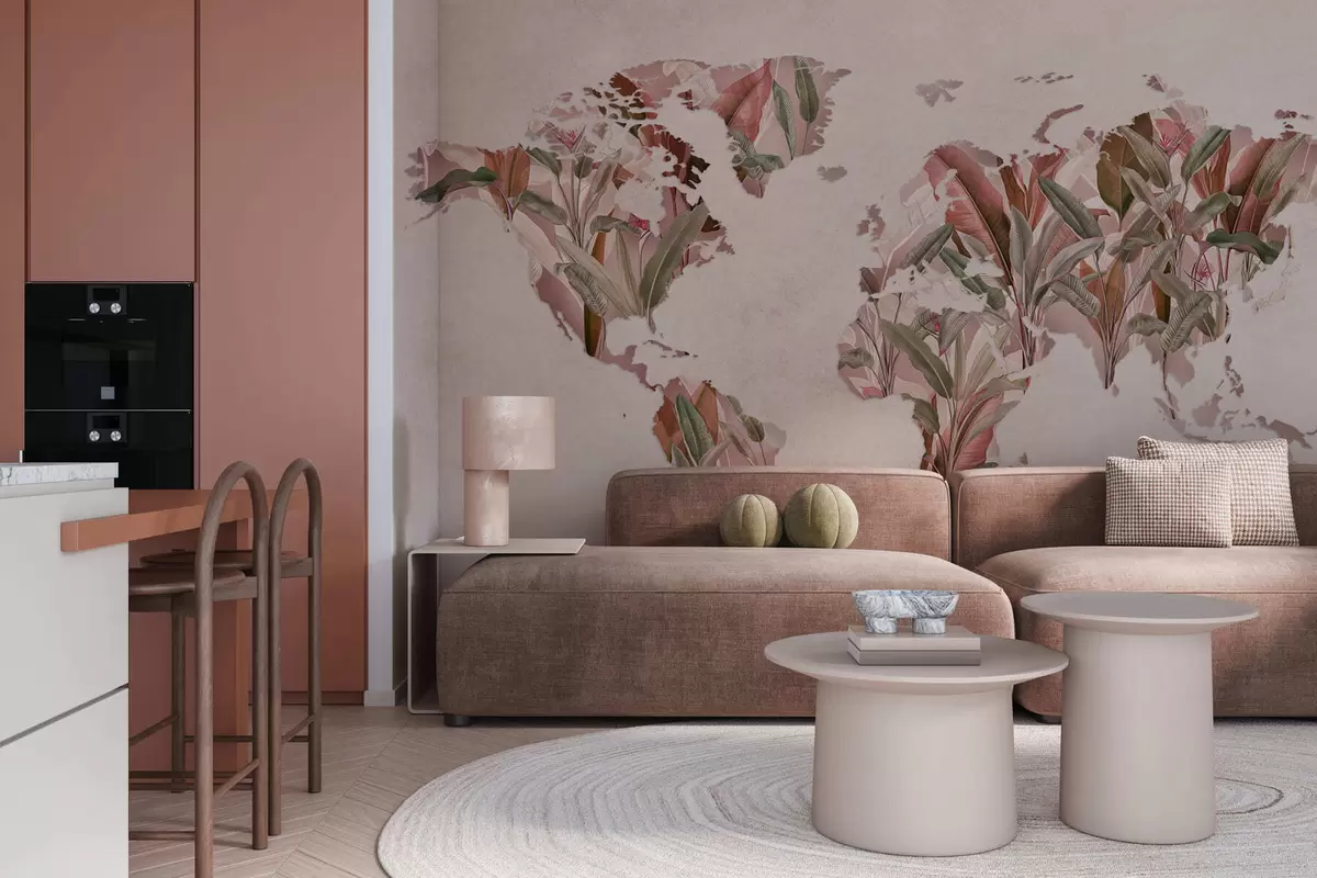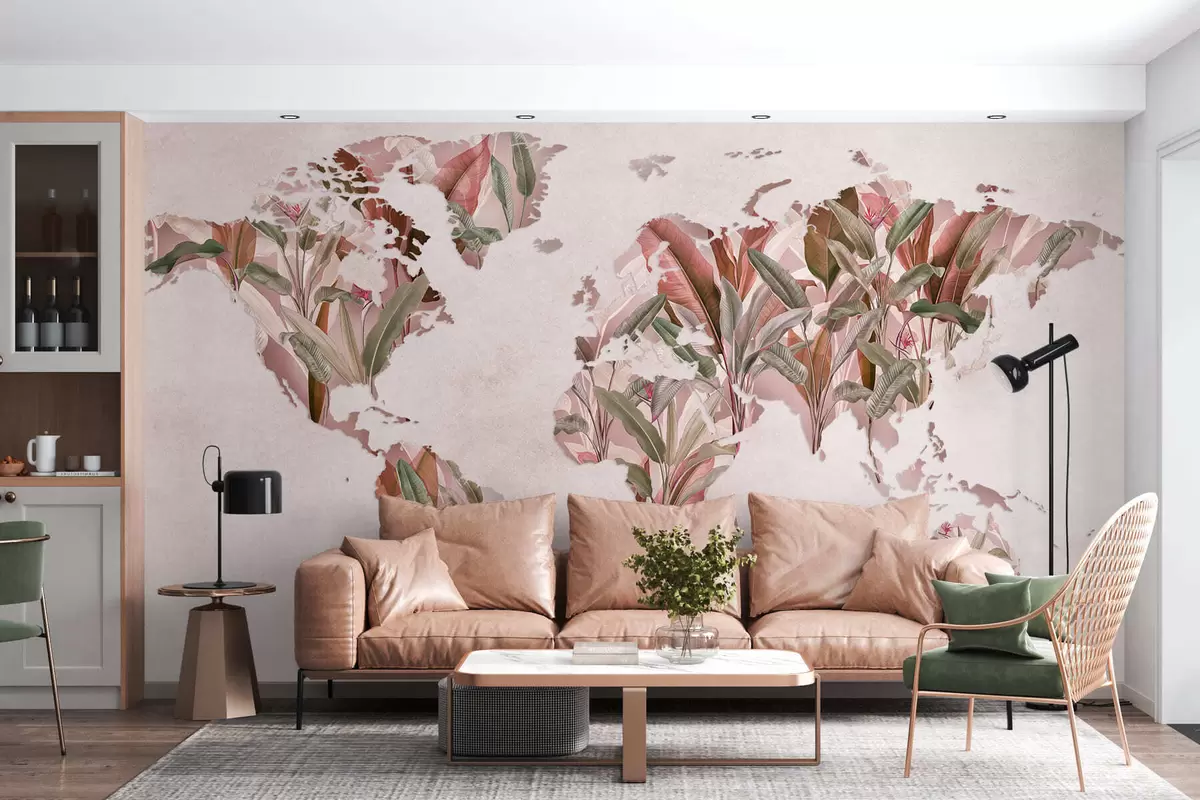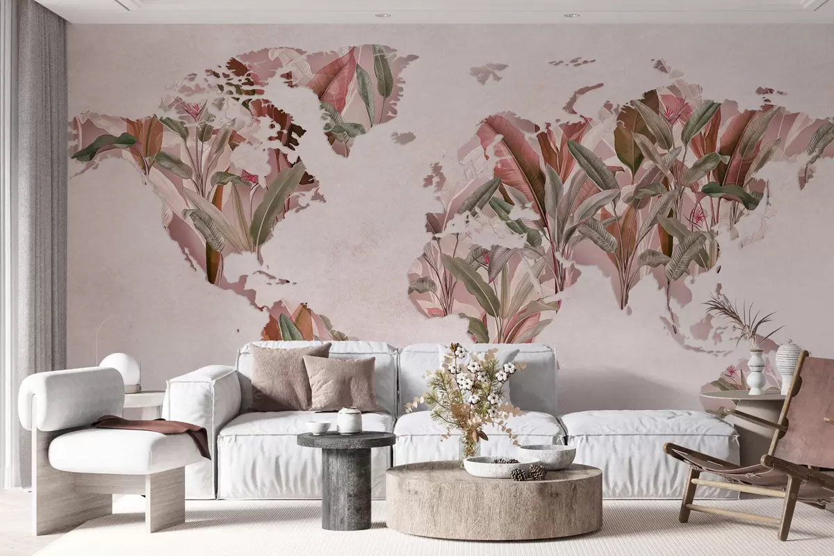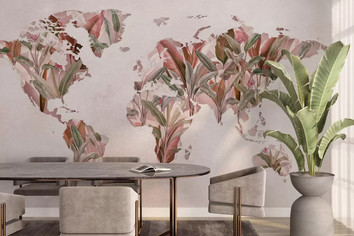 Papel tapiz Un mapamundi rosa hecho con hojas de plátano Nr. c00007v2