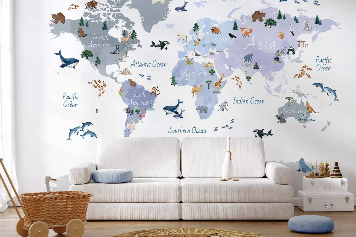 Se puede limpiar suavemente con una esponja suave. Los murales de pared con recubrimiento de barniz pueden limpiarse con agua.