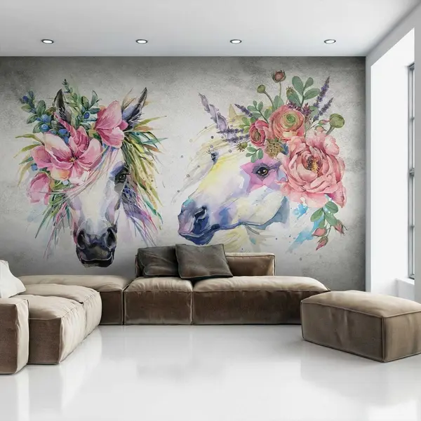 Papel tapiz Caballos con flores Nr. u14264