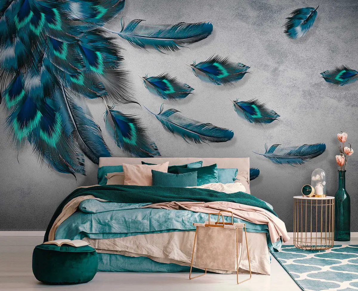 Papel tapiz Plumas de pavo real en el fondo de la pared de hormigón Nr. u29836