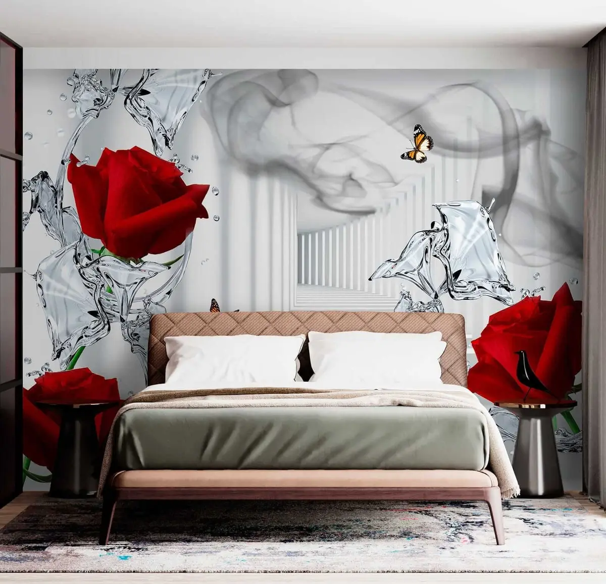 Papel tapiz Rosas rojas y salpicaduras de agua Nr. u41092