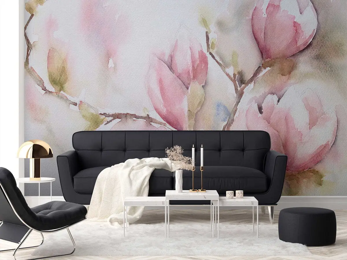 Papel tapiz Floración de magnolias, pintura de acuarela. Nr. u53757