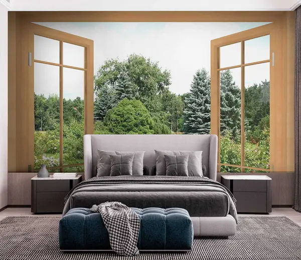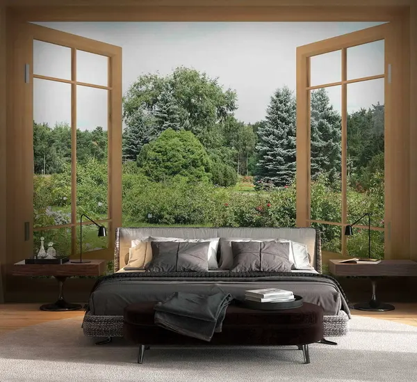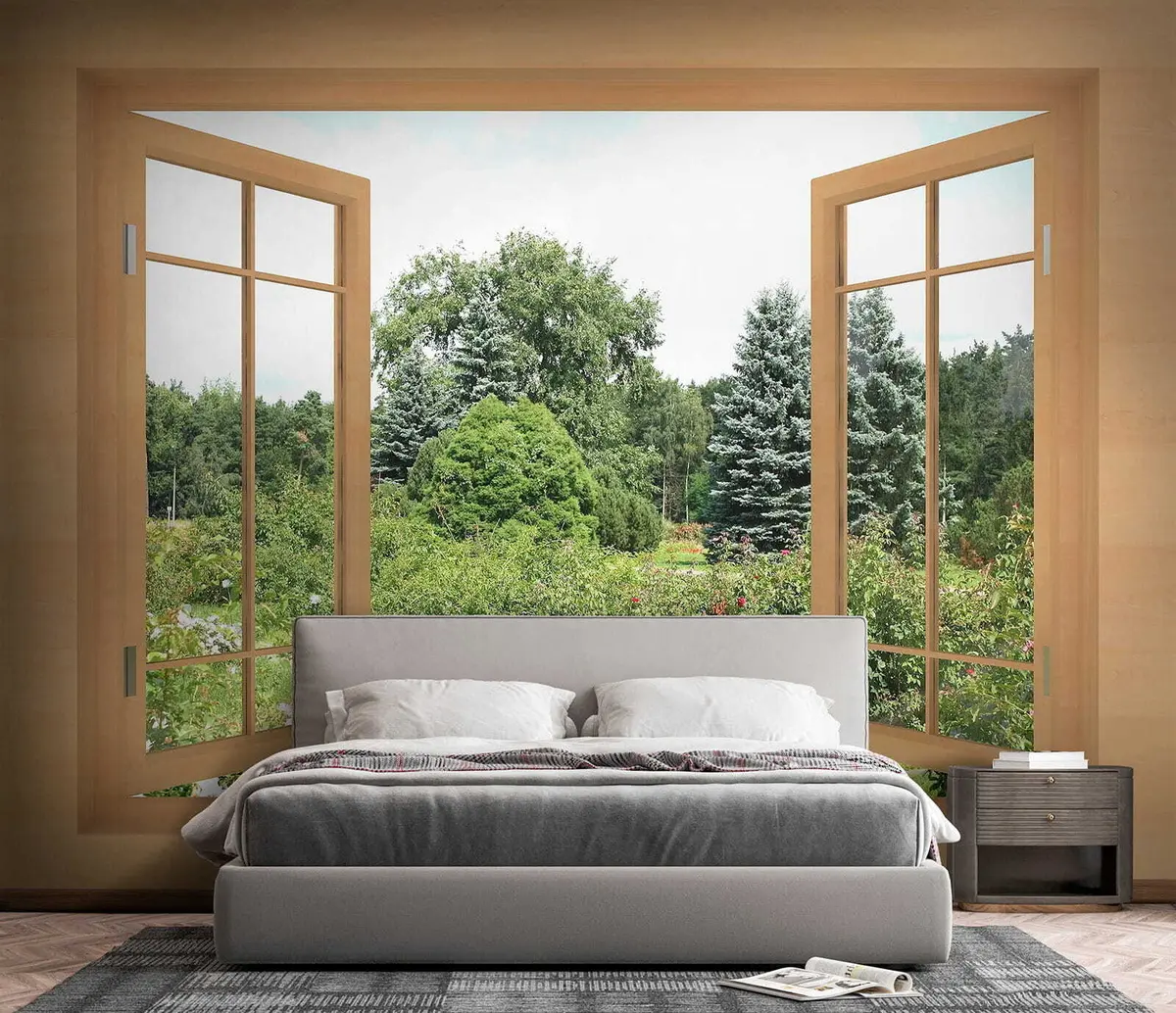 Papel tapiz Vista desde la ventana al bosque Nr. u60673