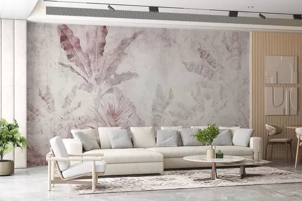 Papel tapiz Hojas de plátano sobre un muro de hormigón Nr. u73886v2