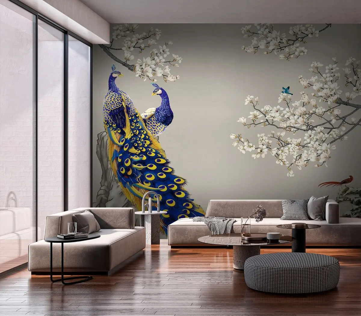 Papel tapiz Pavo real en ramas de Sakura Nr. u79801