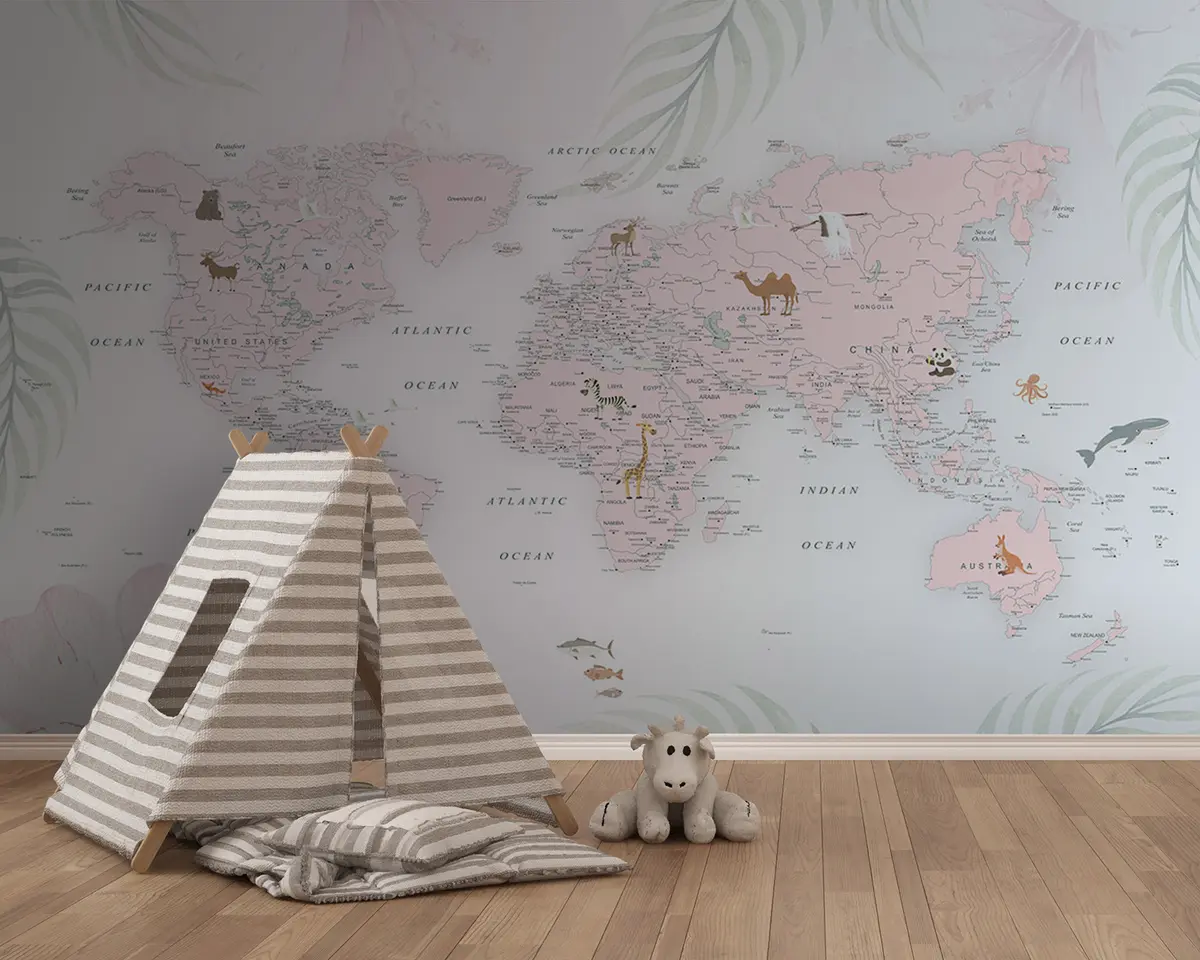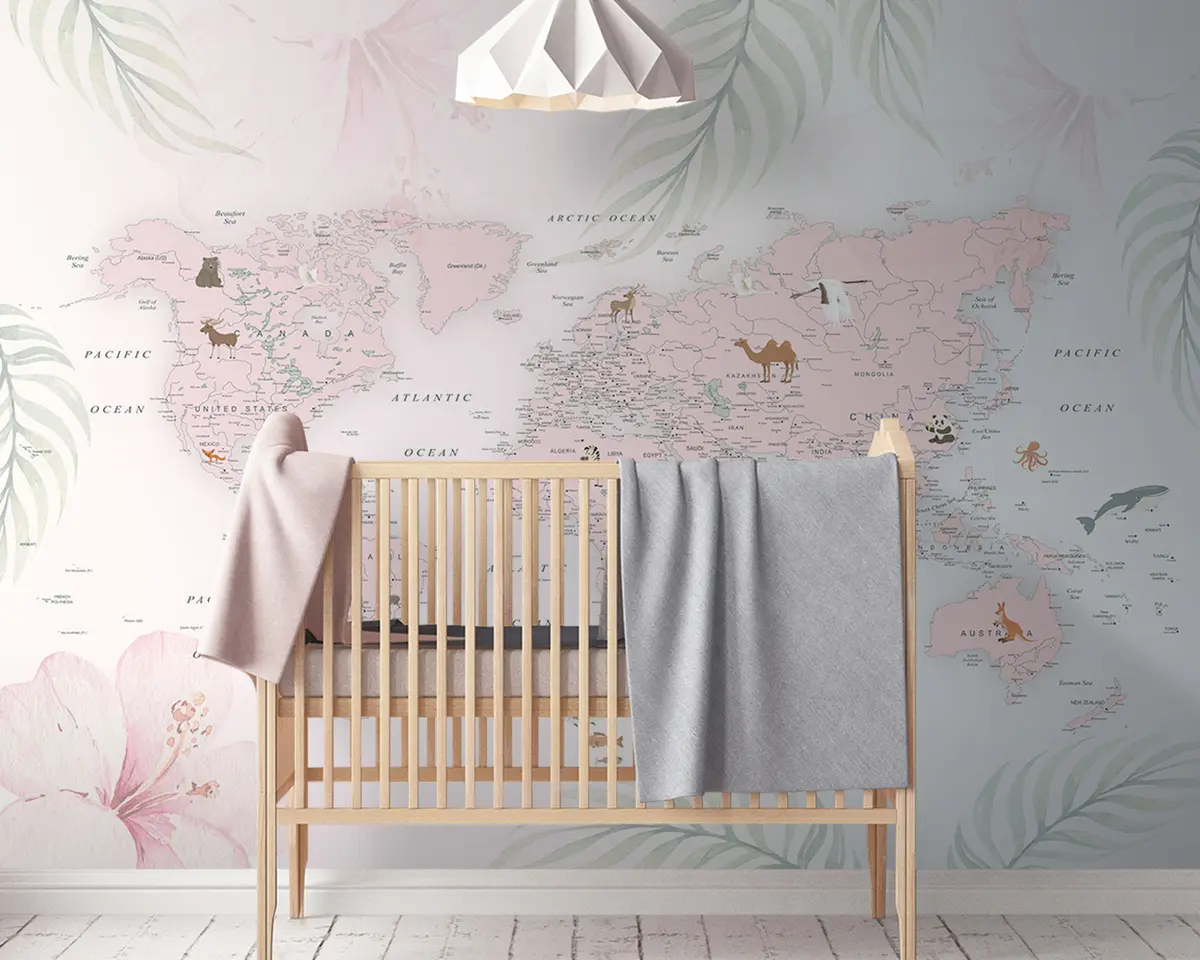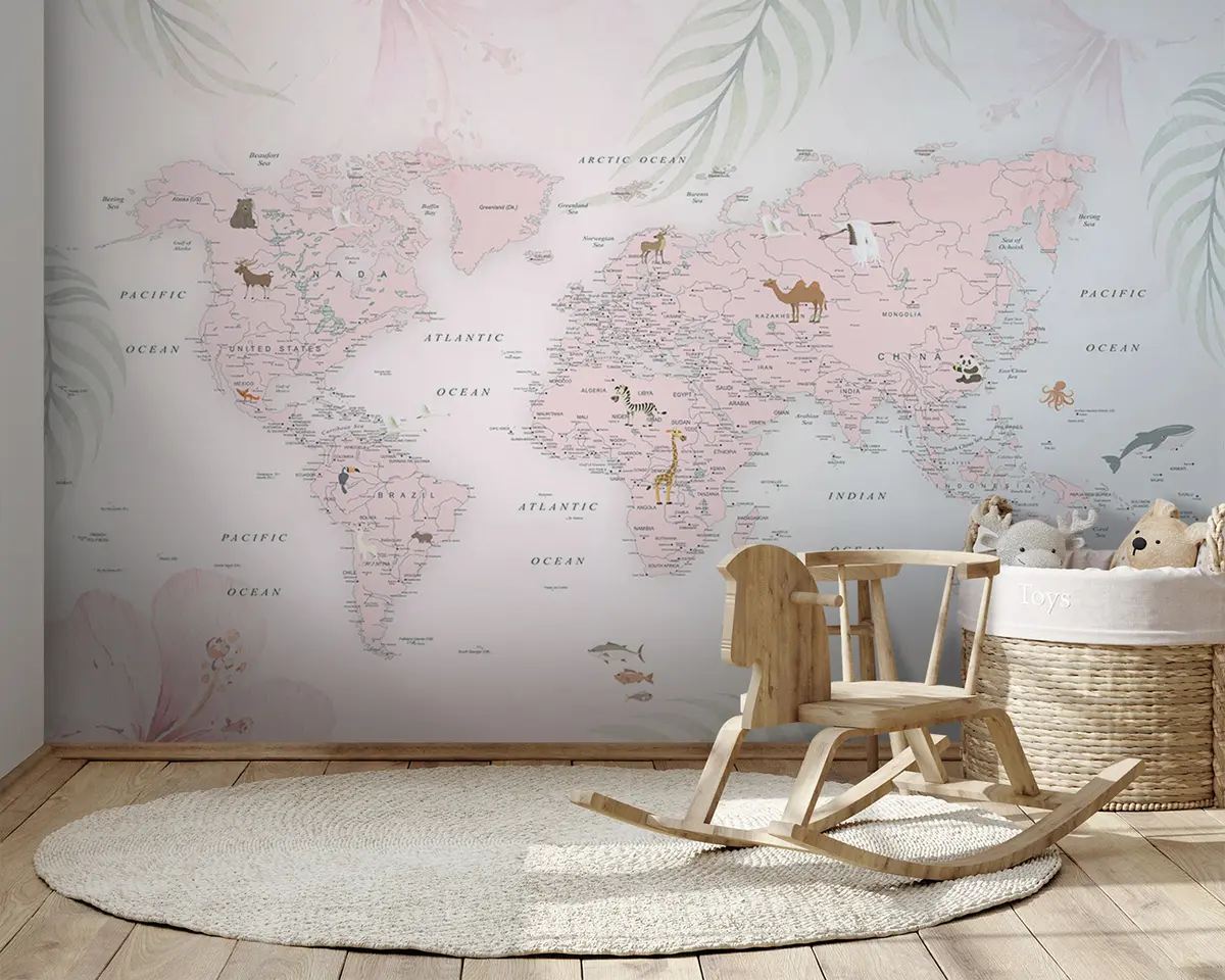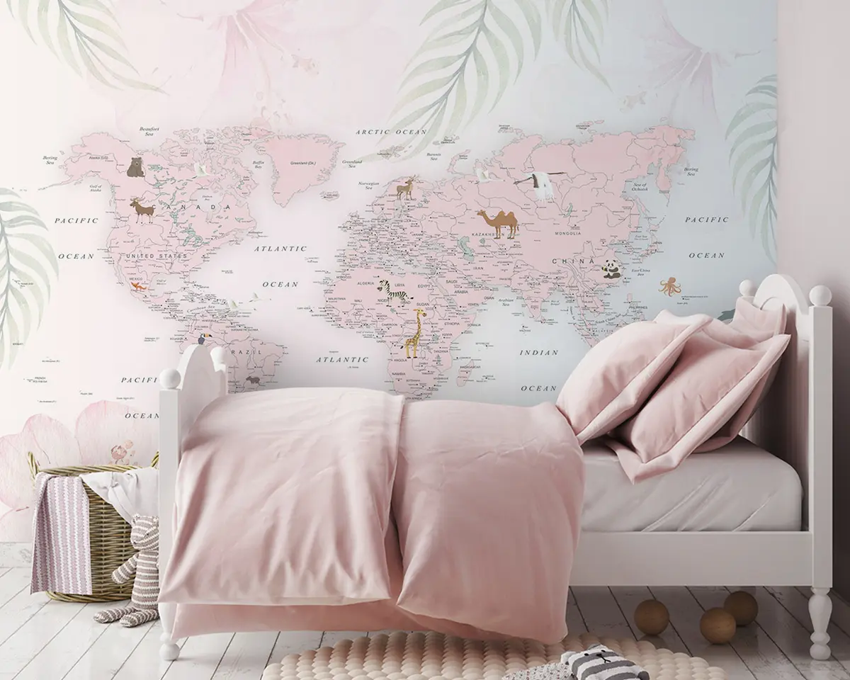 Papel tapiz Mapa mundial para niñas en estilo rosa Nr. u79832