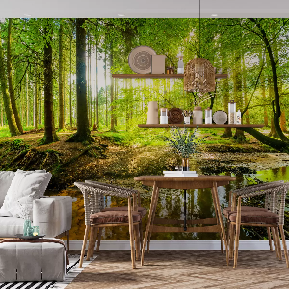 Papel tapiz Transparencia de la corriente forestal Nr. u93621