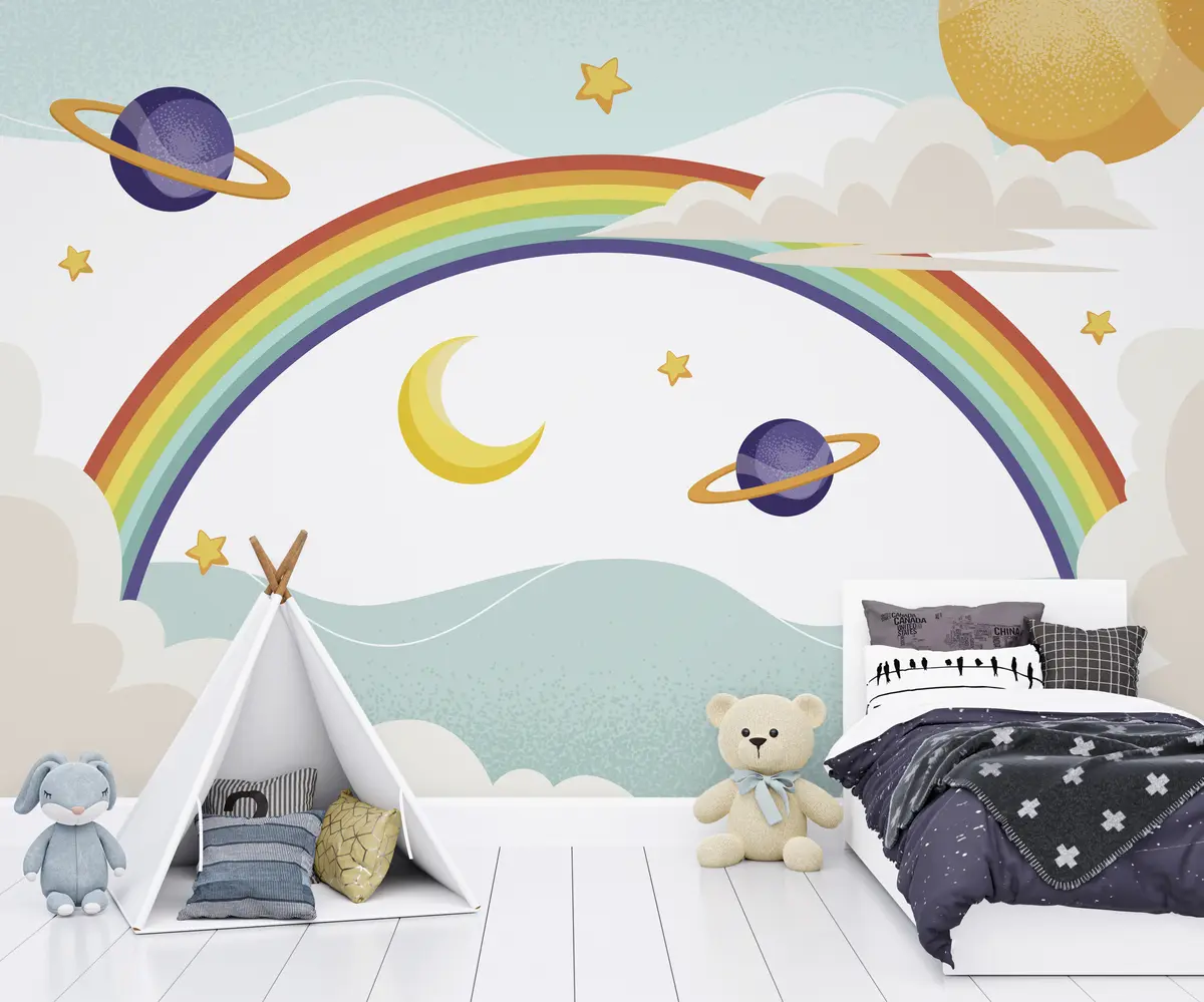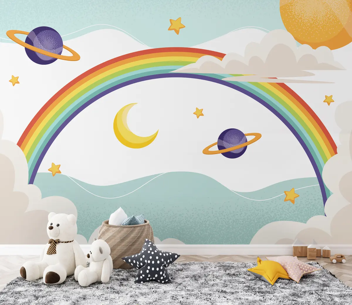Papel tapiz Arco iris en las nubes, planetas, estrellas. Nr. u94327
