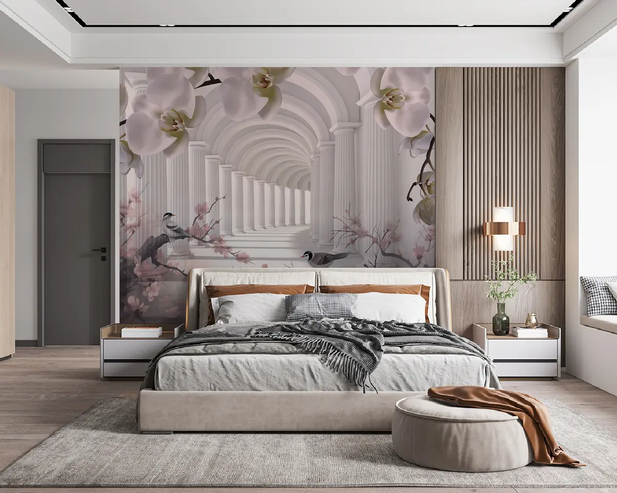 Papel tapiz Hermoso túnel con pájaros y orquídeas. Nr. u94513