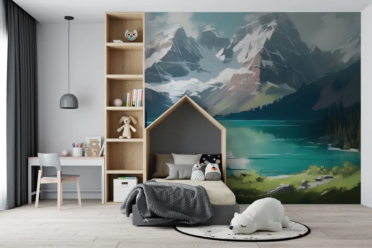 Papel tapiz paisaje de montaña pintado Nr. u94775