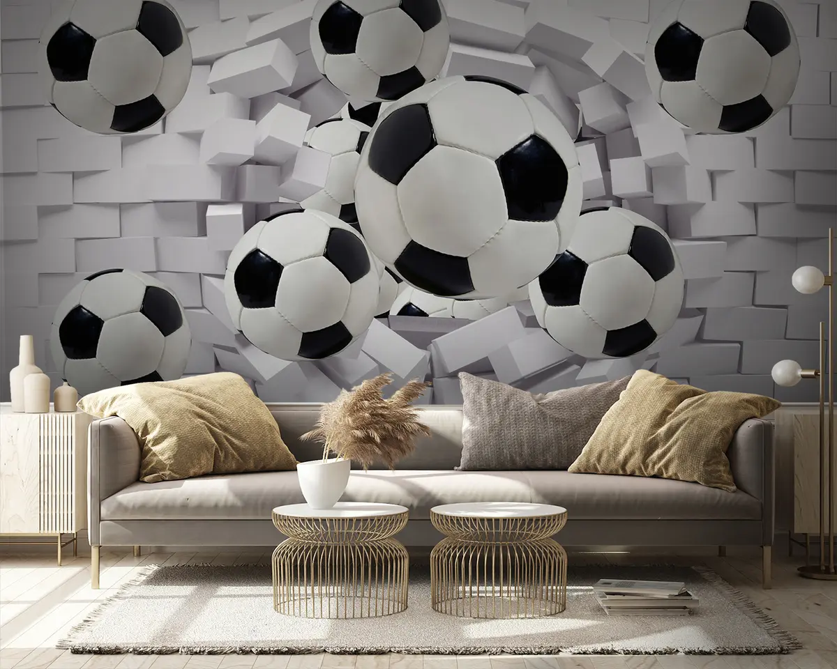 Papel tapiz Balones de fútbol en el fondo de una pared de ladrillos Nr. u94958