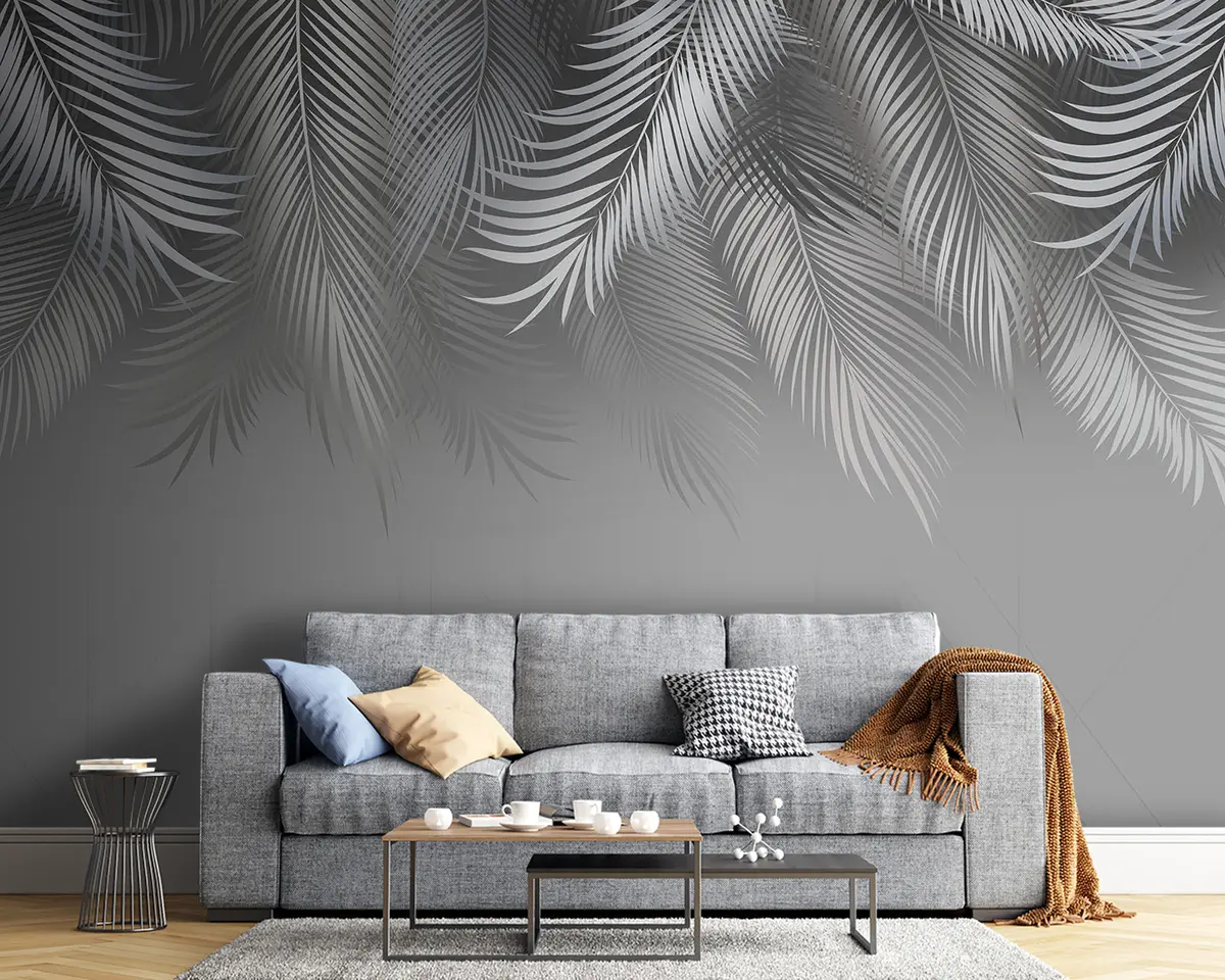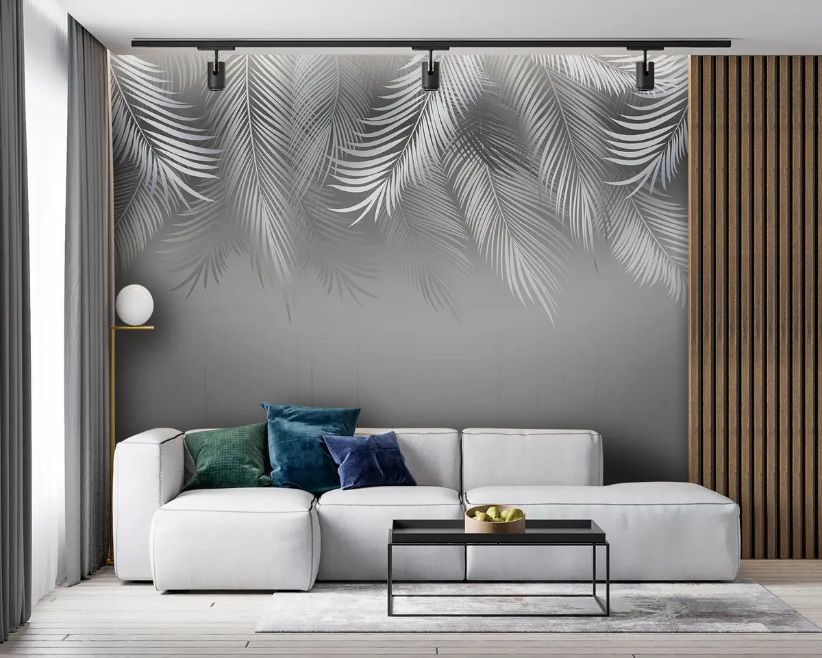 Papel tapiz Hojas tropicales y fondo geométrico translúcido. Nr. u94962
