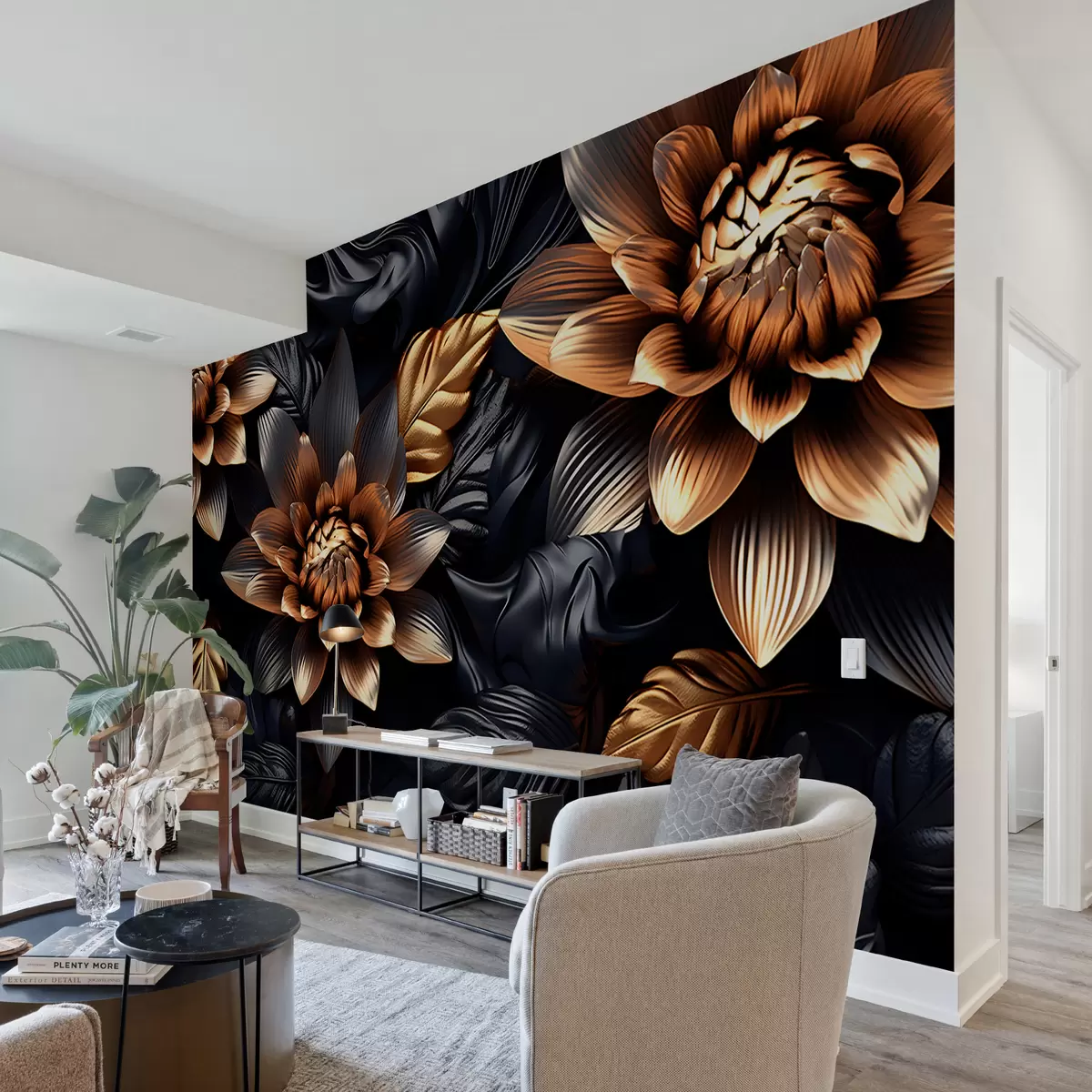 Papel tapiz Flores voluminosas negras Nr. u95244