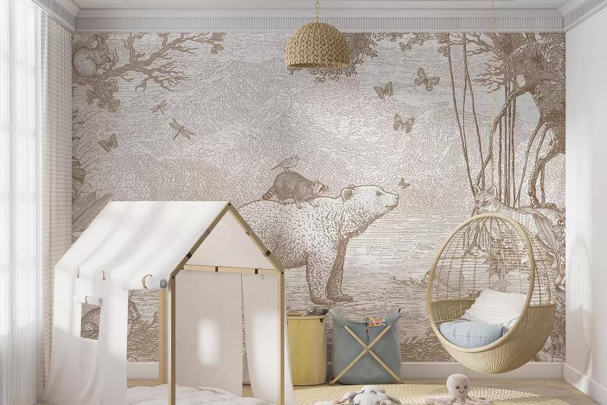 Papel tapiz Bosque de hadas con animales adorables Nr. u95425