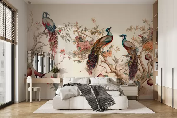 Papel tapiz Pájaros en las ramas de una granada Nr. u95667