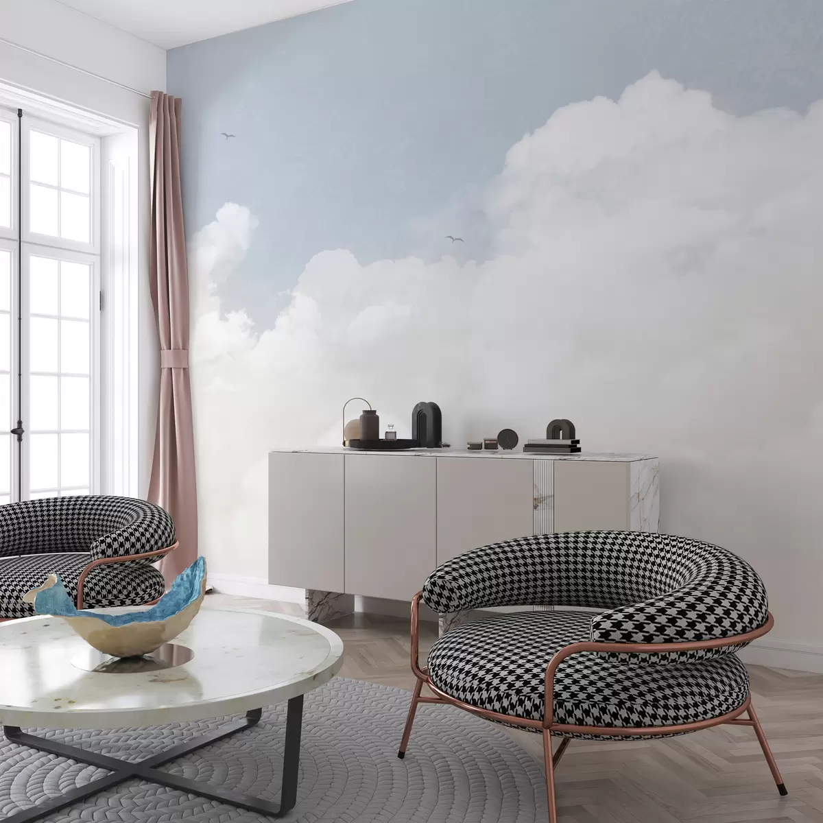 Papel tapiz Nubes vintage en el cielo azul Nr. u96783v3