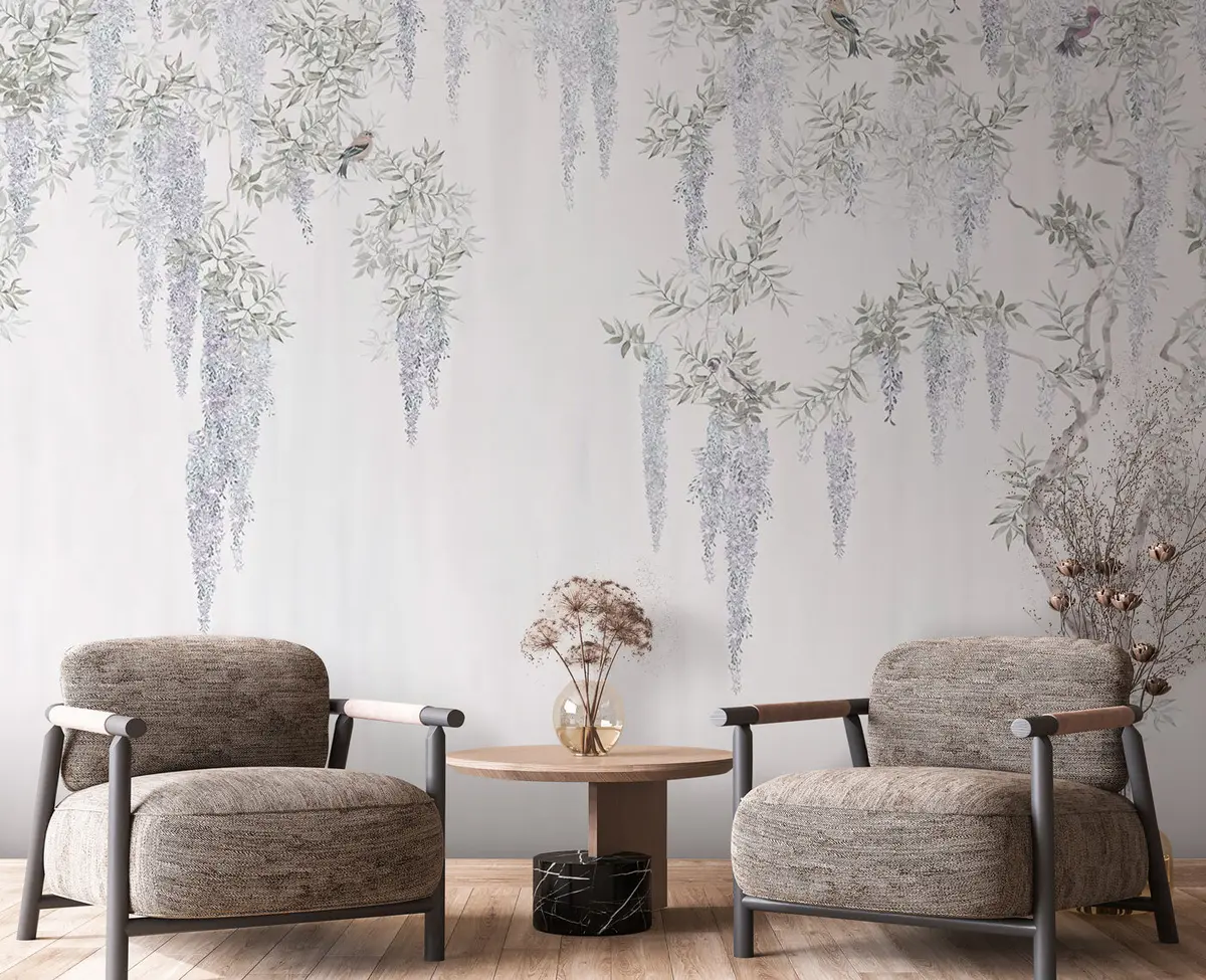 murales de pared Flores de glicina, glicina, minimalismo, monocromo, loft y estilo japonés. u96928