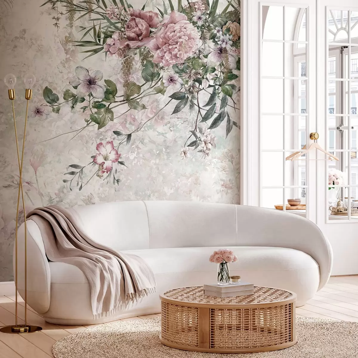 Papel tapiz Flores antiguas en la pared de mármol Nr. u97046