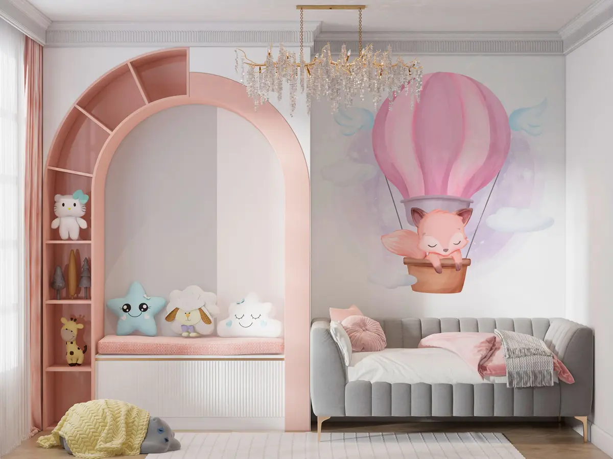 Papel tapiz Ilustración de un zorro en un globo aerostático. Nr. u97395