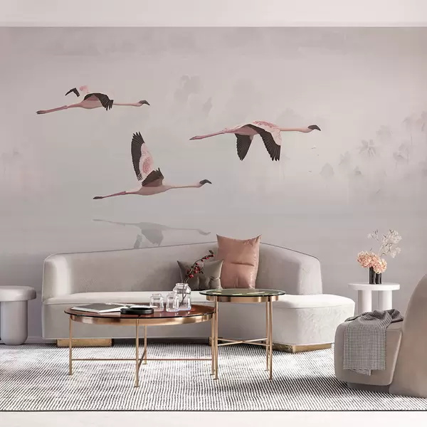 Papel tapiz Flamencos rosados sobre la playa y el mar de la selva tropical Nr. u97457