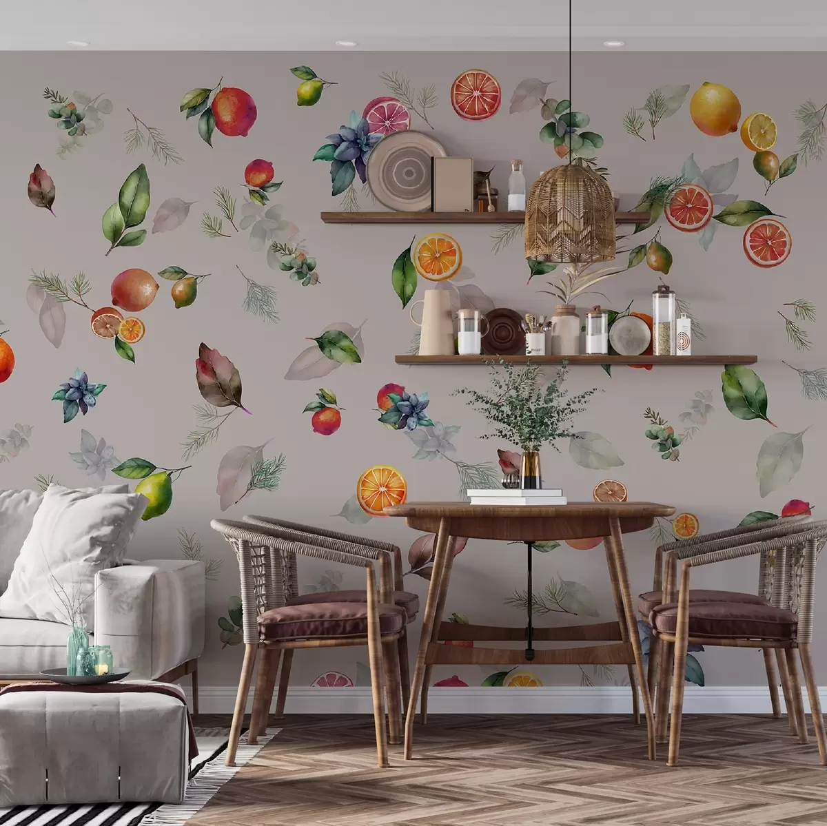 Papel tapiz Frutas y hojas de colores Nr. u98770v1