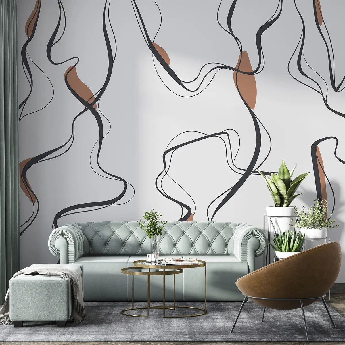 Papel tapiz Dibujo artístico a tinta, motivo abstracto, líneas geométricas, gris y naranja Nr. u99659v3