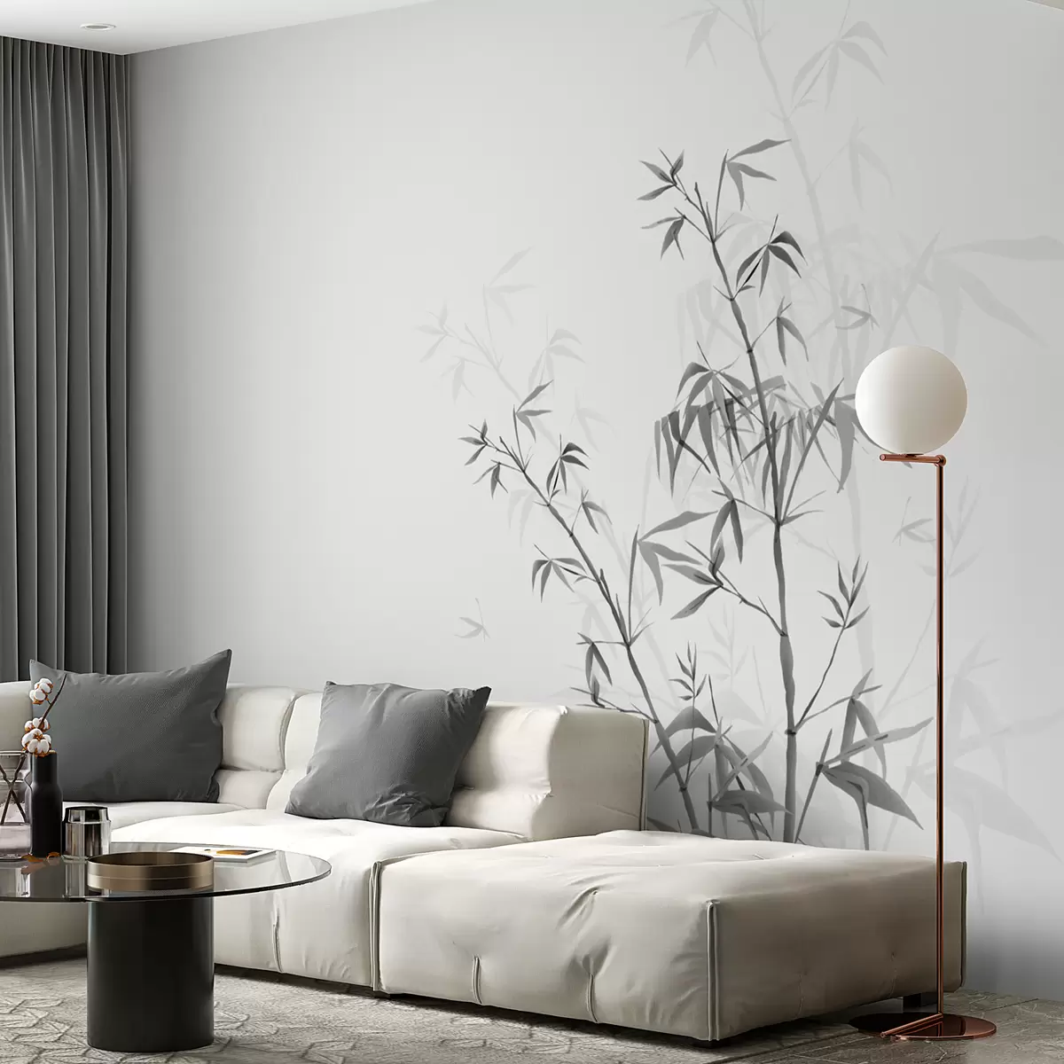 Papel tapiz Minimalismo estilo Japandi planta de bambú Chinoiserie color gris Nr. w00546v1