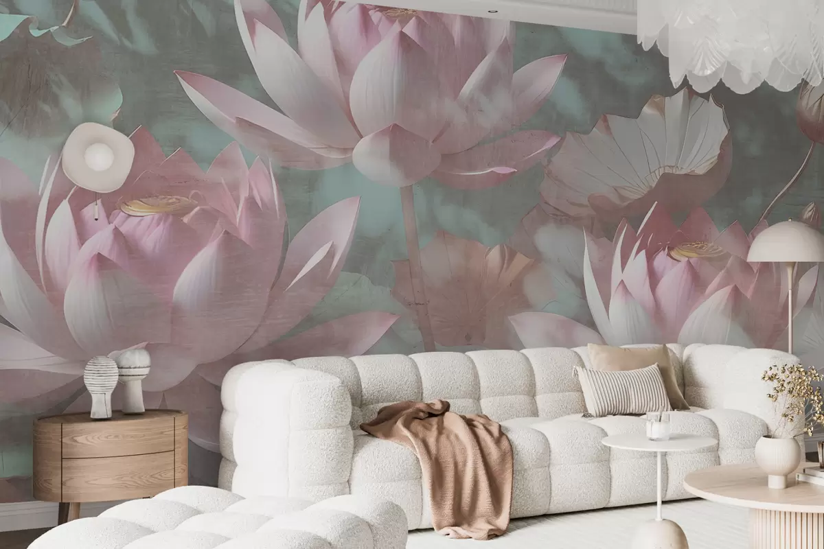 Papel tapiz Un primer plano de varias delicadas flores de loto rosa sobre un fondo suave y borroso Nr. w00710