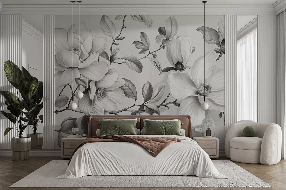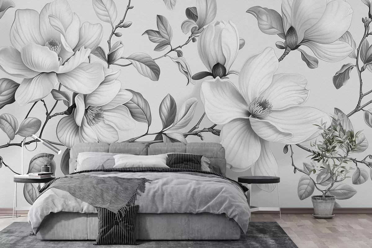 Papel tapiz Elegancia monocromática de magnolia Nr. w01429