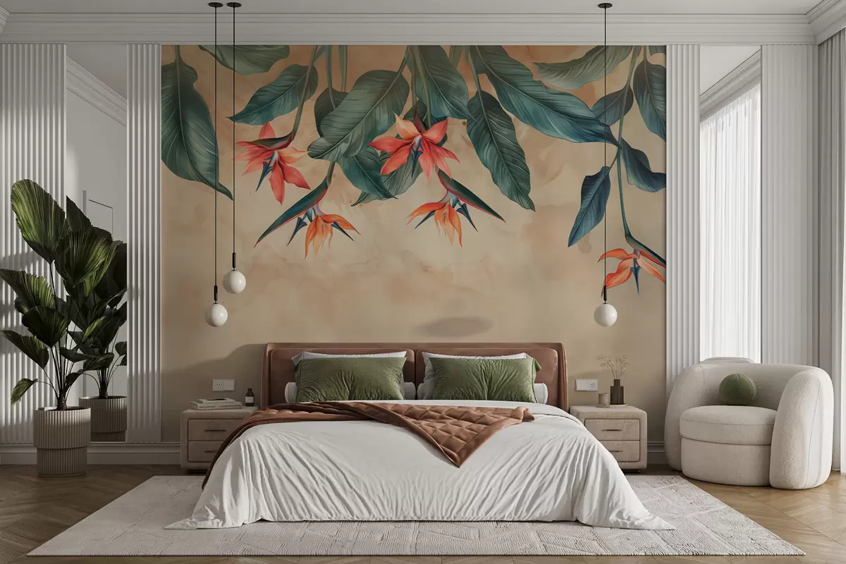 murales de pared Floración tropical sobre fondo de acuarela beige w01485