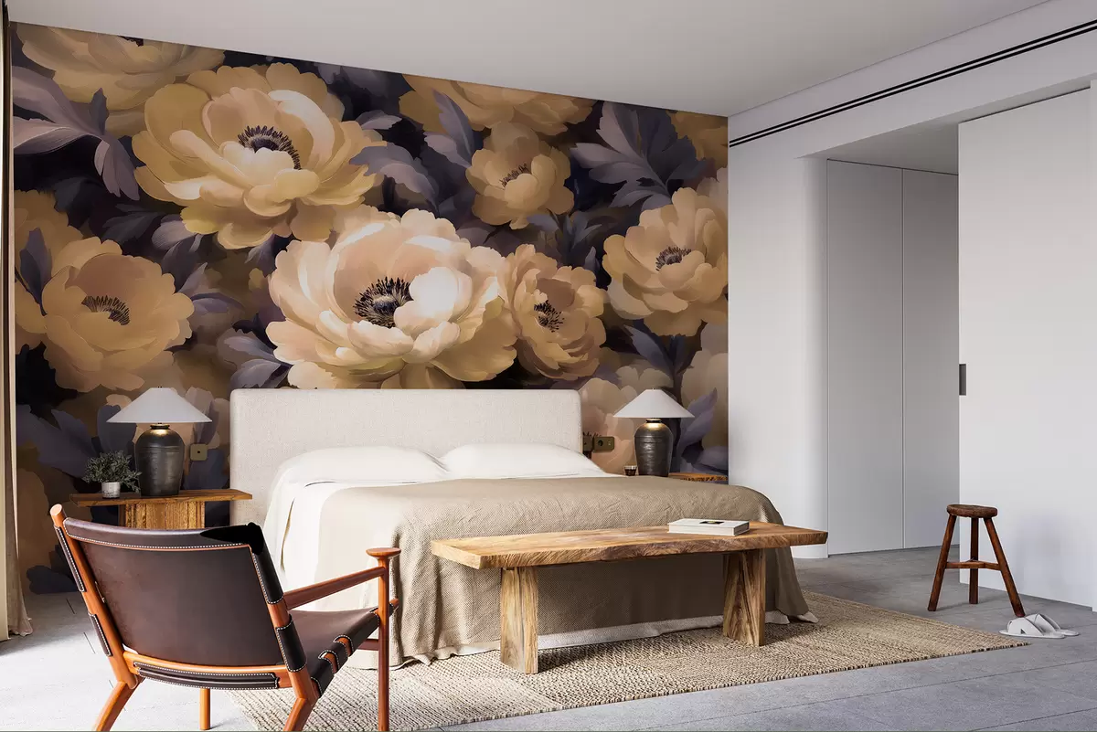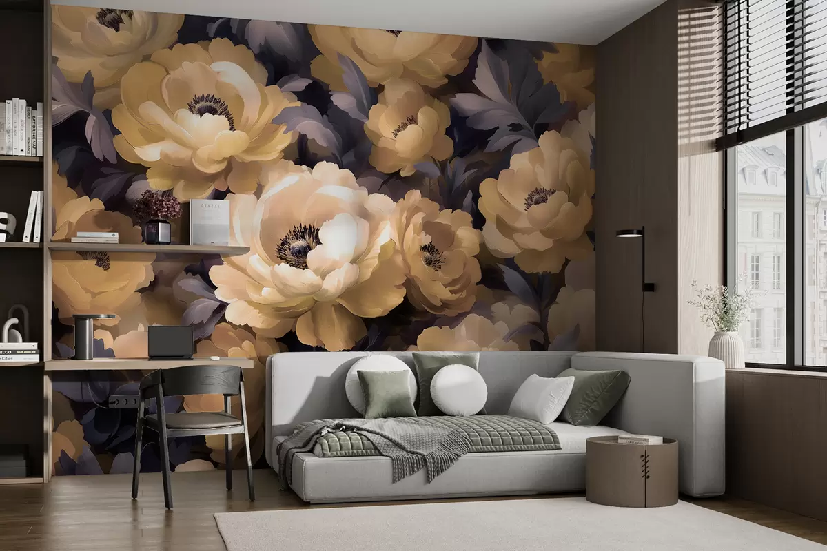 Papel tapiz Pintura al óleo de estilo floral basada en el color beige y morado Nr. w01581