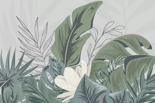 Papel tapiz Exuberante vegetación en suaves tonos pastel Nr. w01598