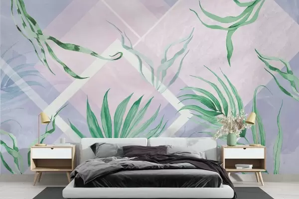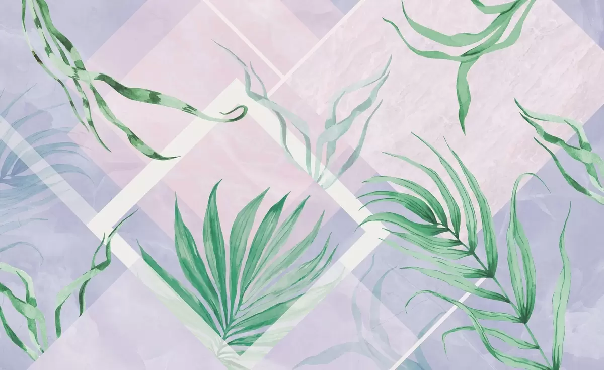 Papel tapiz Exuberante vegetación sobre un suave fondo pastel Nr. w01625
