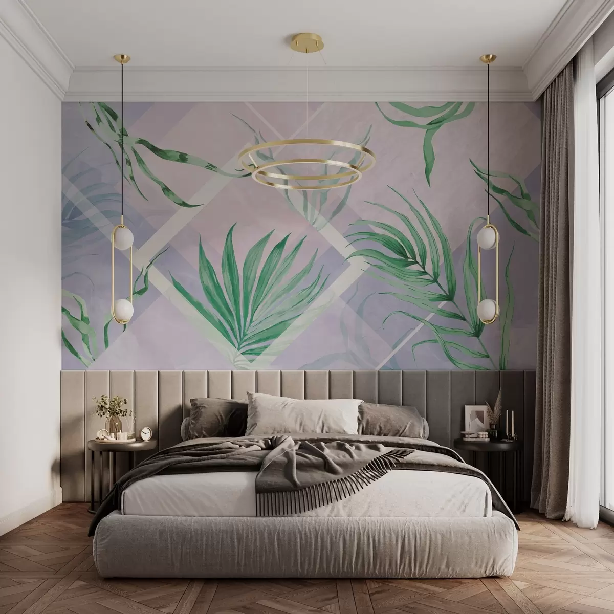 Papel tapiz Exuberante vegetación sobre un suave fondo pastel Nr. w01625