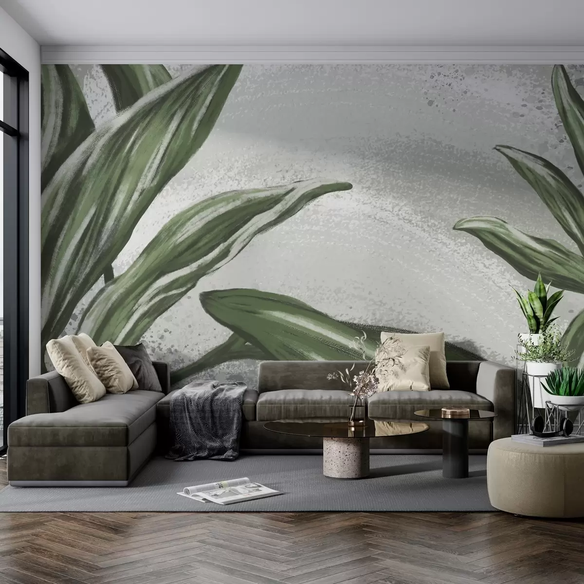 Papel tapiz Exuberante vegetación sobre un fondo texturizado Nr. w01682