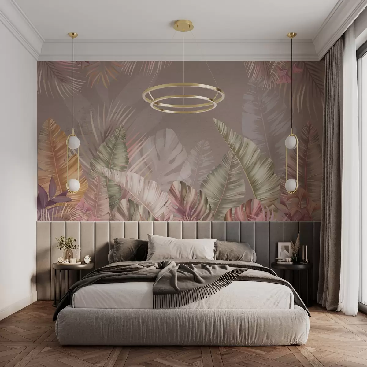 Papel tapiz Hojas tropicales en suaves tonos pastel Nr. w01684