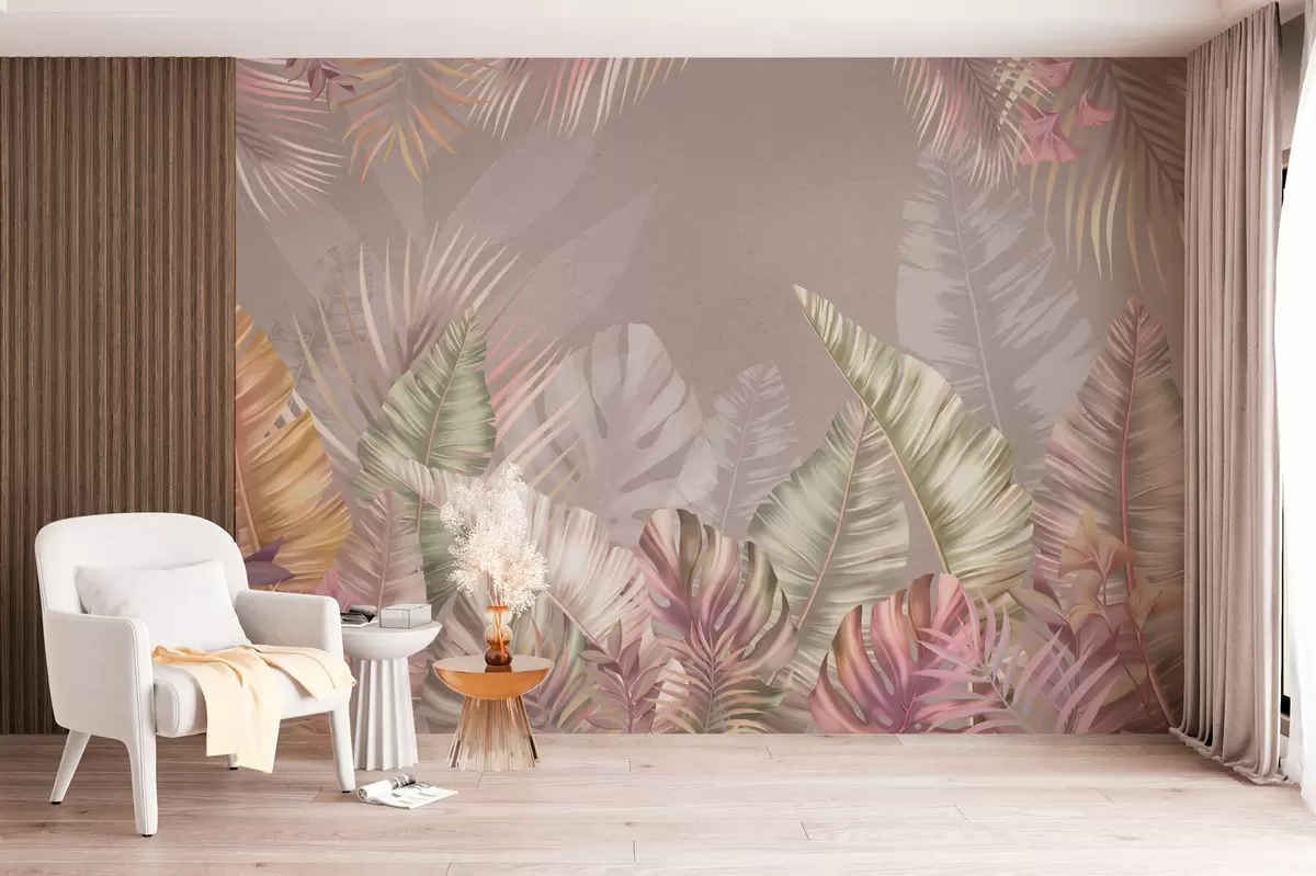 Papel tapiz Hojas tropicales en suaves tonos pastel Nr. w01684