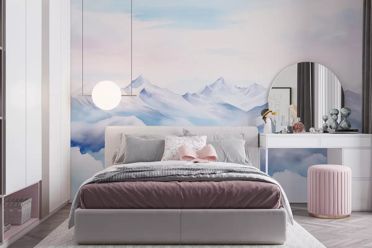 Papel tapiz Paisaje de montaña, acuarela, suaves colores morados Nr. w01787