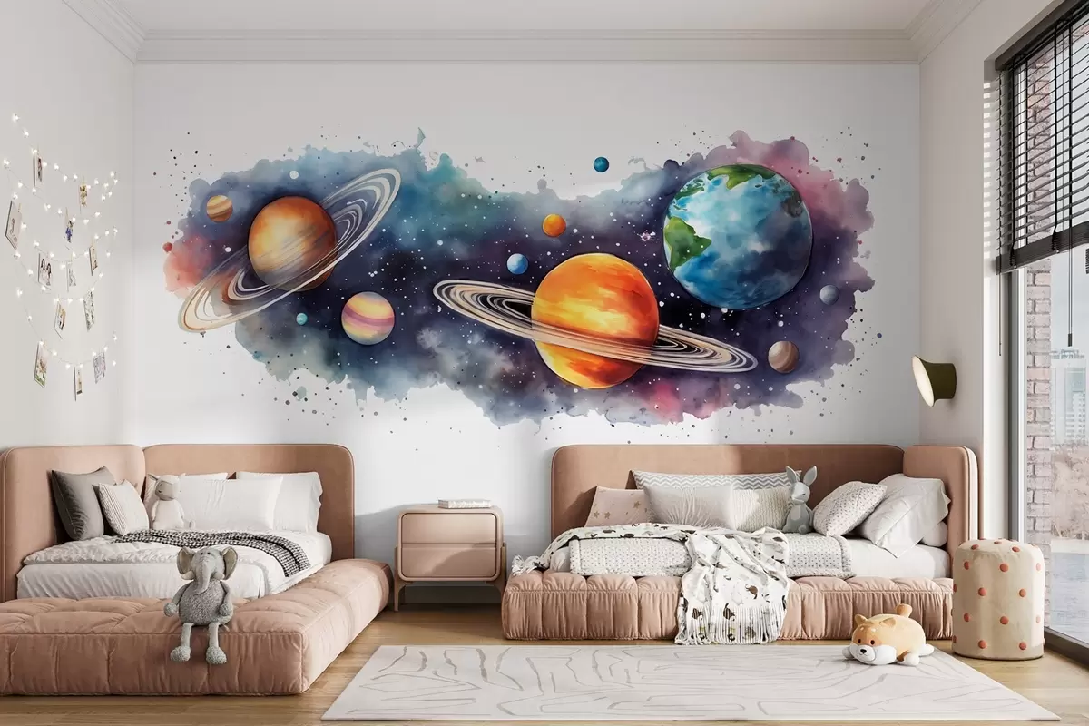 Papel tapiz Acuarela planetas, espacio, cósmico, Tierra, Saturno Nr. w01802