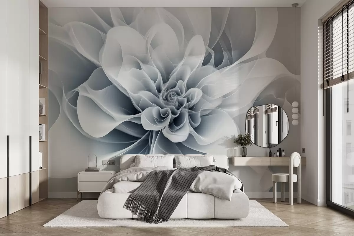 Papel tapiz Elegante imagen abstracta de una flor con líneas suaves en azul Nr. w01853