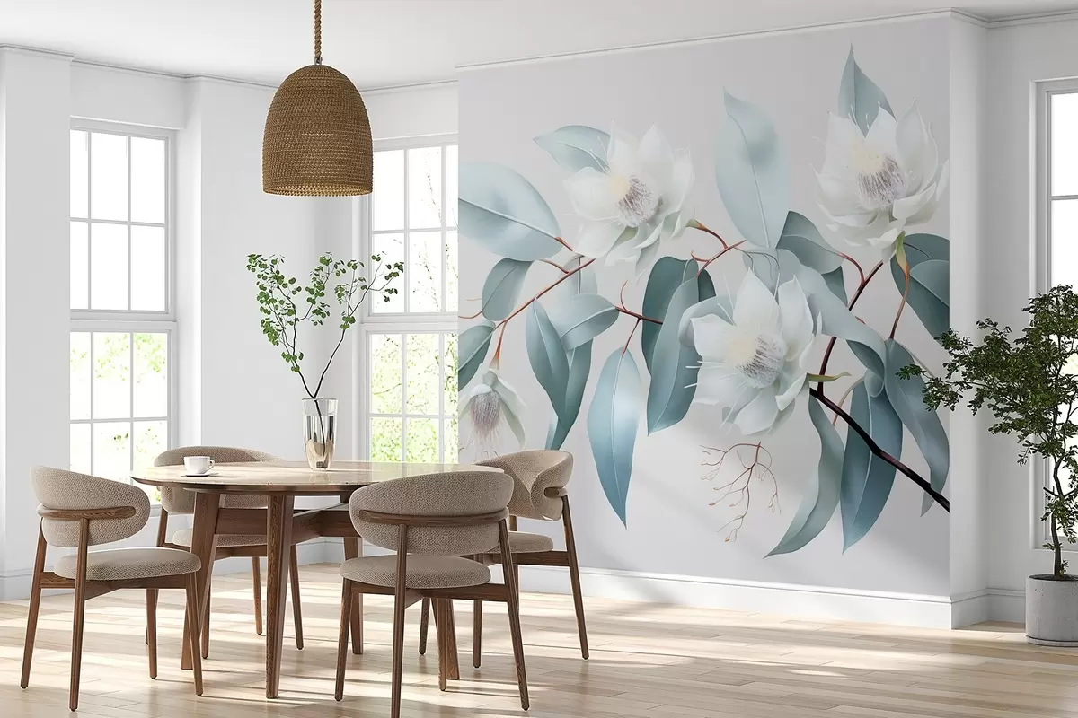 Papel tapiz Flores de jazmín en la rama, acrílico, colores grises suaves Nr. w01885